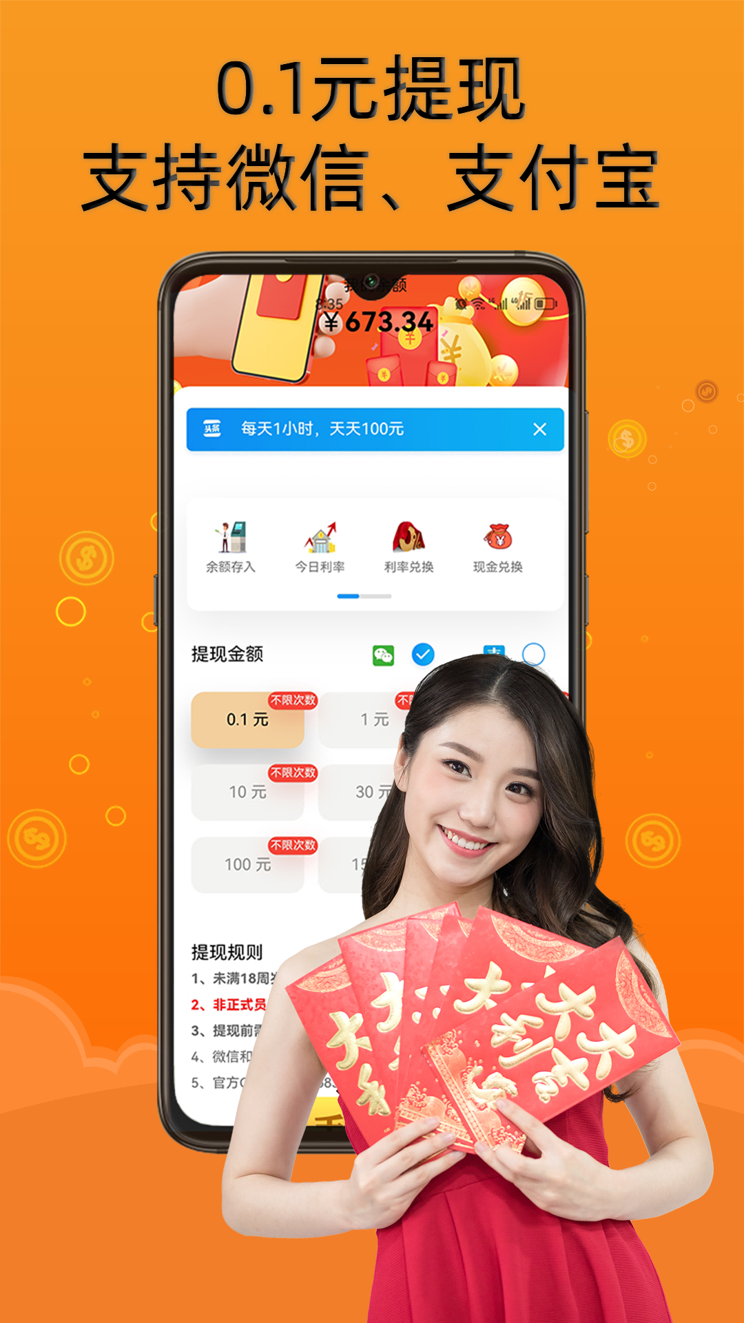 2.每日分红:普通玩家每天可以领0.11~0.3元,正式员工可以领取0.1~3元。